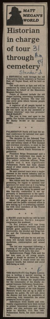Consisting primarily of clippings from New Zealand newspapers, it covers the subjects of Homosexual Law Reform efforts, the Aids epidemic and New Zealand gay and lesbian rights movements.