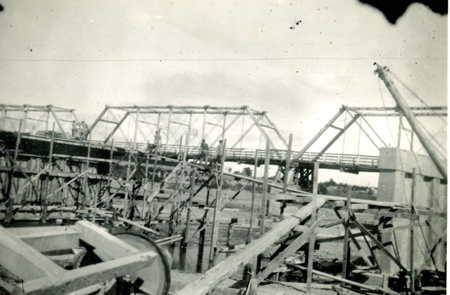 One of a group of photographs from Ron Grammer's working life in bridge engineering in the 1940s and 1950s. Unidentified bridge.