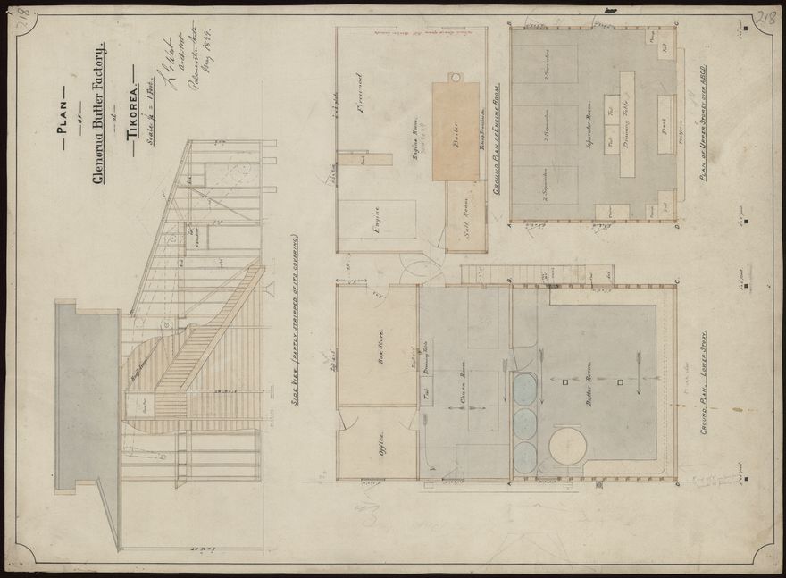 These plans for a butter factory were designed by L. G. West. The Danish-born architect Ludolph Georg West (1846-1919) established an architectural practice in Palmerston North in about 1880. In 1912 he formed