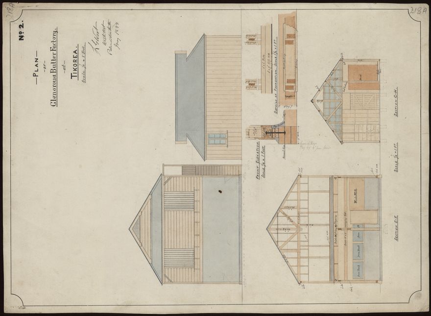 These plans for a butter factory were designed by L. G. West. The Danish-born architect Ludolph Georg West (1846-1919) established an architectural practice in Palmerston North in about 1880. In 1912 he formed