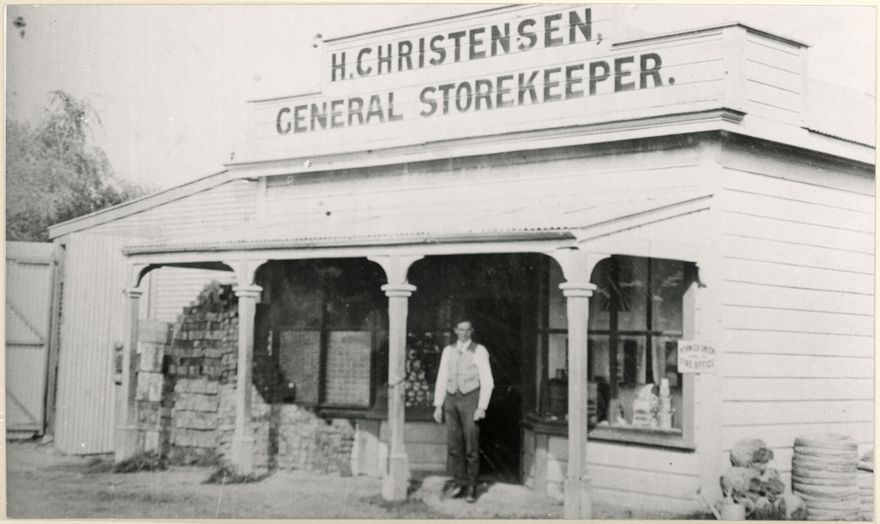 H I Christensen outside his Pohangina store. See 2007n_poh8_rtl_0854 for an earlier view of the store.