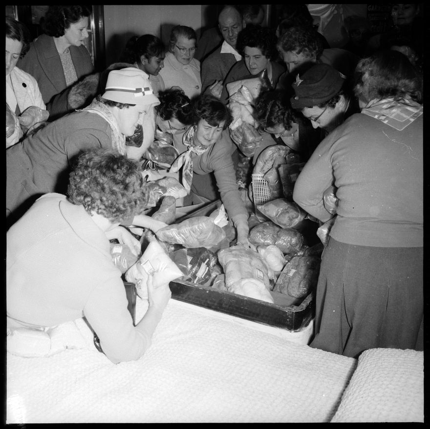 This image was taken for a story that ran in The Manawatu Evening Standard on 20 June 1961 "After waiting in large numbers outside the store for some time, women shoppers streamed into Garners Departmental Store this morning. Due to the large number of people present, the doors were opened periodically to let shoppers in and out."