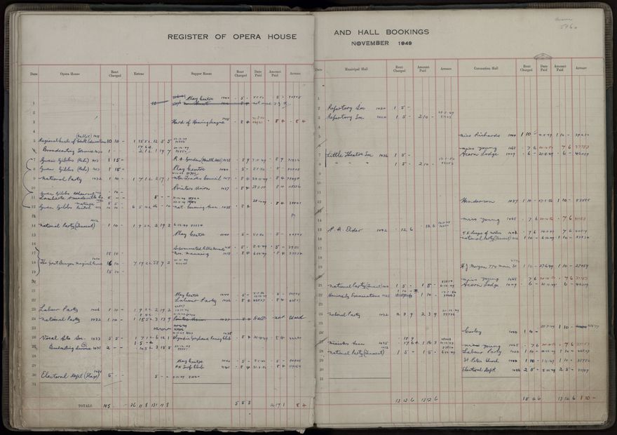 Municipal Opera House and Coronation Hall, Register of Bookings