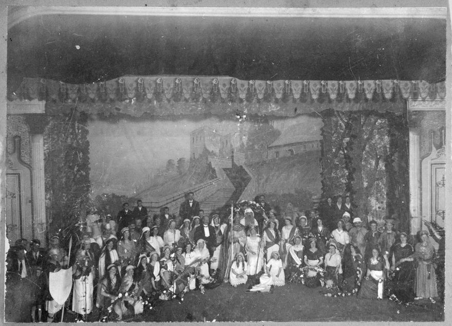 The actors in "David the Shepherd Boy" are seen here in costume raising money for patriotic purposes for WW1. According to Manawatu Times, (5 August 1915, Page 8), the show was "brilliant and successful".