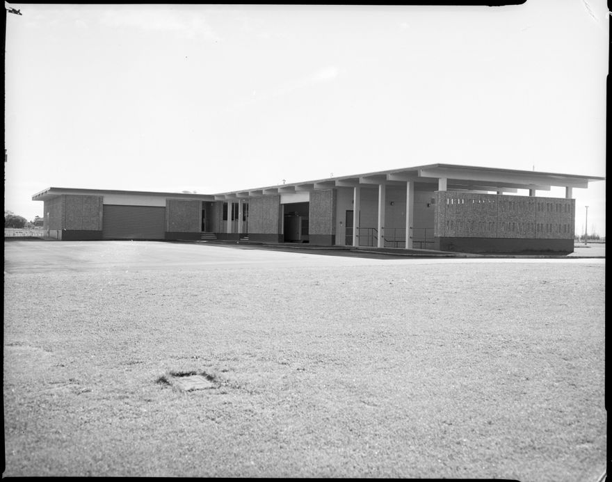 The sewerage treatment plant beside the Manawatu River opened in 1968, replacing the septic tank and filter beds which had been in use since 1905. Some images from this collection have been digitised from prints housed in other archival collections. This image is from an original negative.