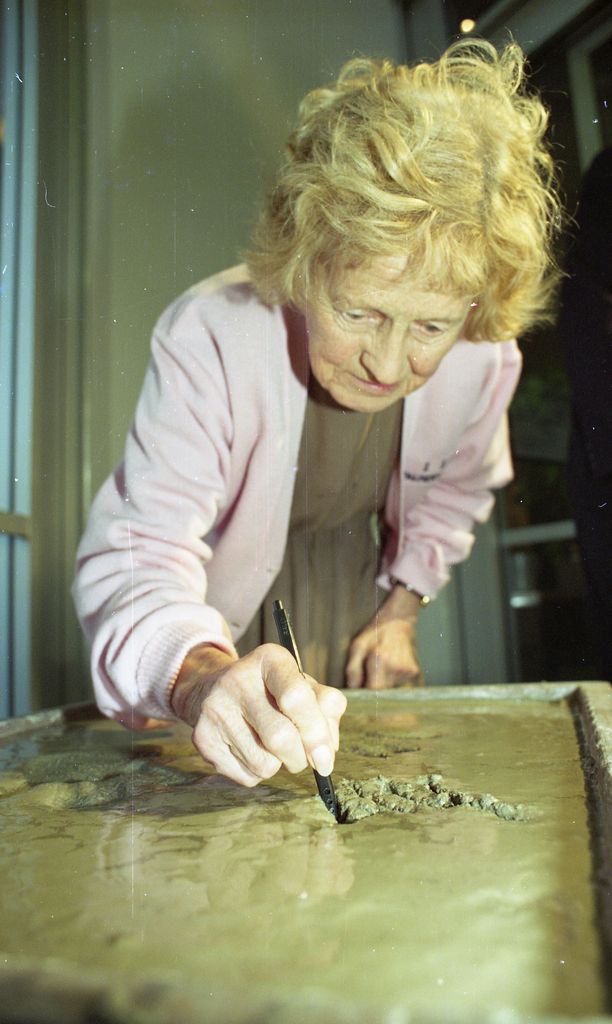 Emily remained in character for her seven-hour visit, where a 'Madge' company bus acted as her chauffer between the children’s ward at the hospital and a public reception outside Downtown in Broadway. The Rescue Helicopter then took her out to Linton Military Camp where she christened and Armoured Personnel Carrier (APC) bound for Bosnia with the name ‘Madge’. Finally, a visit to the residence of Brightwater Home was capped off with Emily pressing her hands into a square of concrete which was to go on display in Broadway.