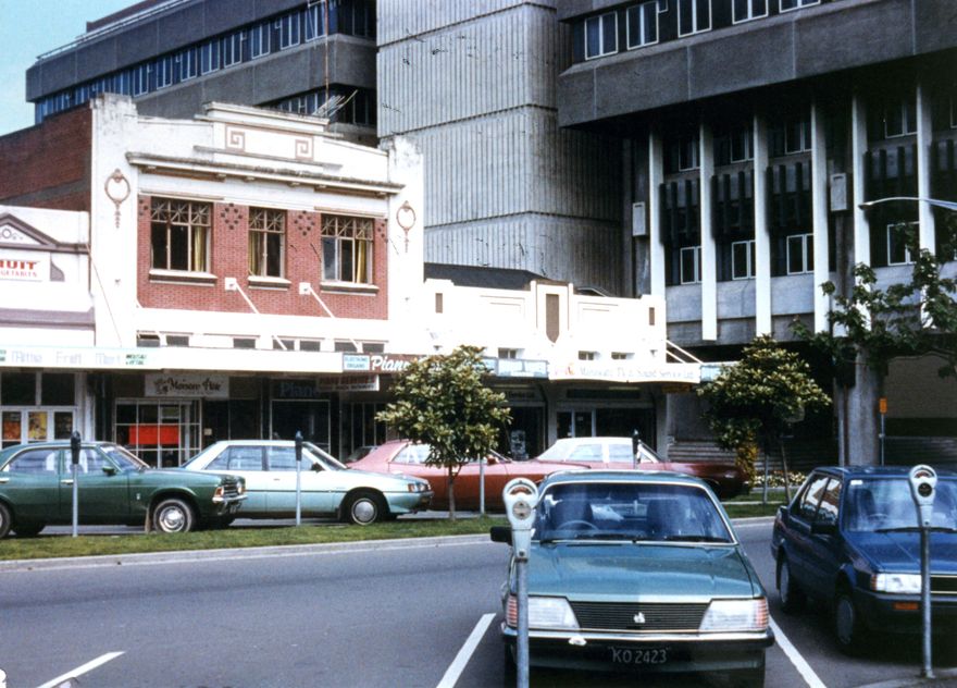 Businesses on The Square between Church and Main Street in the shadow of the Civic Administration Building.