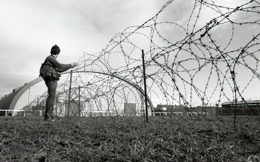 This image was taken for a story that ran in The Manawatu Evening Standard on 1 August 1981, with the caption: "Ground in state of siege." Barbed wire was erected around the Showgrounds and barricades blocked parts of Cuba Street in anticipation of anti-Apartheid and anti-Springbok Tour protests during the rugby match played between the Springboks and Manawatū on 1 August 1981