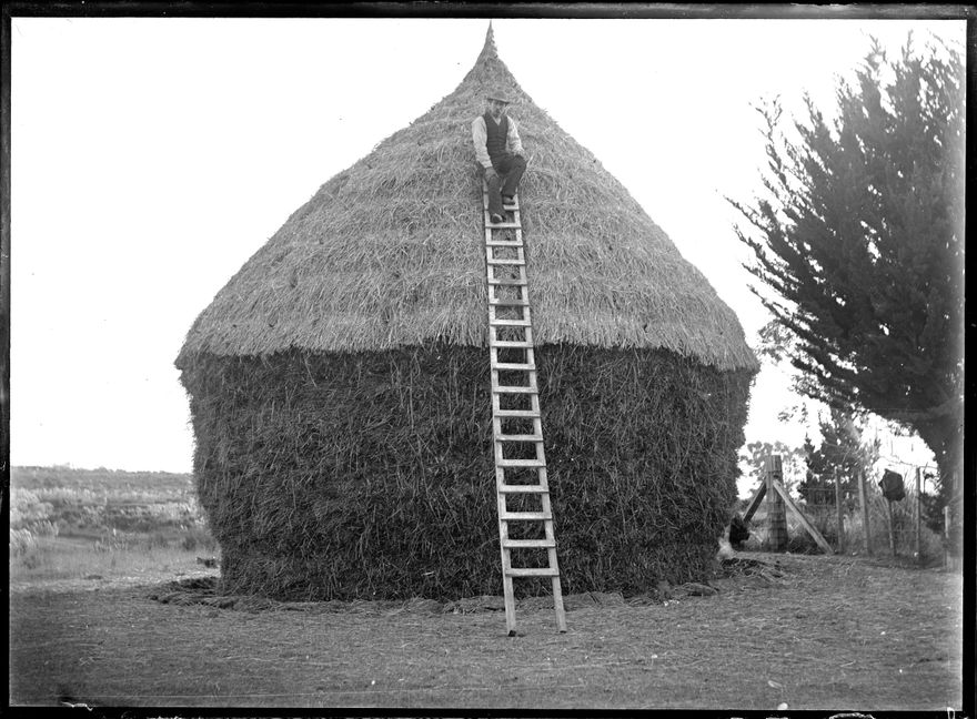 This photograph was created by William James Young in the early 20th century. A large variety of subjects are depicted in the collection, but family, rural life and travel are the most prominent themes. The exact location of the photographs in the Young Collection is unknown, but W J Young lived on a farm in Mt Stewart, Rangitikei, and some of the photographs include his house. The Young family were apparently avid travellers and photographs later in the collection feature scenes from Rotorua, Auckland, Whanganui, as well as other unidentified locations. The portraits are all unidentified, but are presumably of members of the Young family. The photographers parents were George Henry (b 1833) and Jane McDowell (b 1842, d 1916). They came to New Zealand in 1877. The same year, they bought the home farm on Mt Stewart and called it Kilrudden after Kilrudden House, the home of the McDowell family in Ireland. The couple had four children: Ann (b 1873), Margaret (b 1876), John (b 1878) and William James (b 1880). William James married Mary Elizabeth Thompson and they had four children: Doris (b 1914, d 1989), George (b 1916, d 1991), Royden McDowell (b 1925, d 1992) and Noel William (b 1927, d 2013).