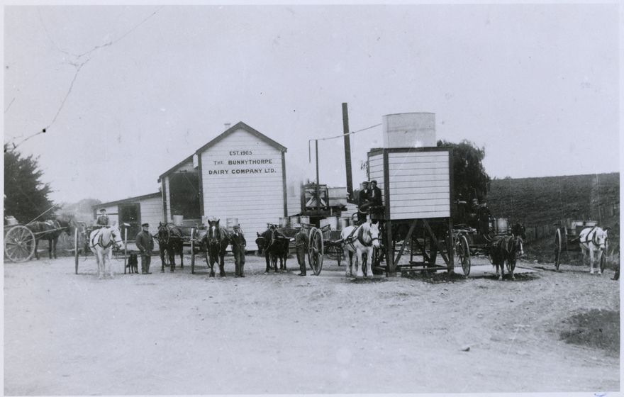 The factory was established in 1905 by J J Gillies. It was sold to the Bunnythorpe Co-op Dairy Co Ltd. in 1907.