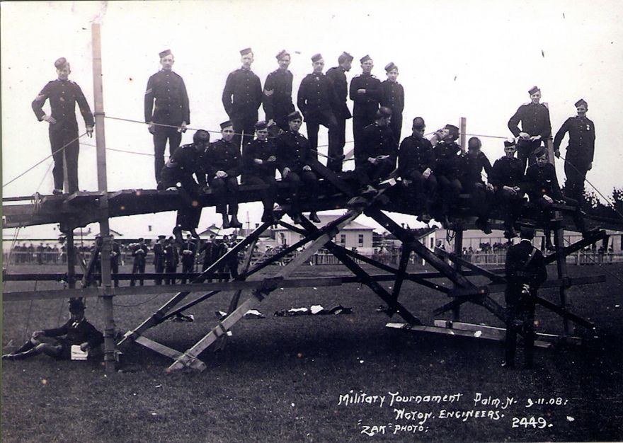 - A military tournament held on 9 November 1908 at the Showgrounds in Palmerston North. The Wellington Engineers are seen in this photo.