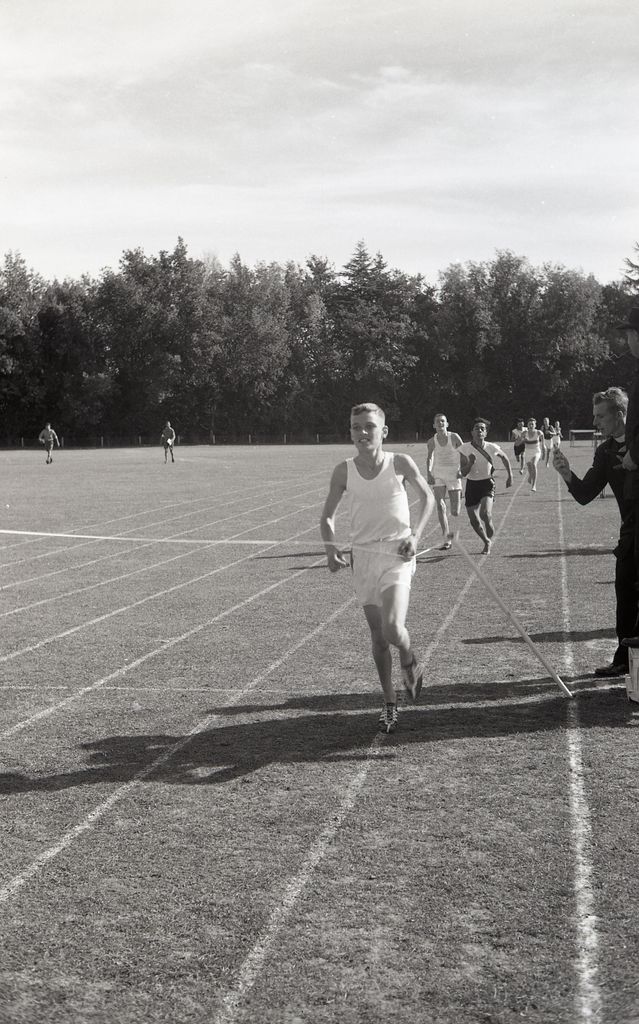Caption: "On Friday15th March, the annual Inter-Catholic Secondary Schools' Athletic Competition was held at Hato Paora College, Parorangi, Feilding. The four schools which took part were as follows: St Augustine's, Wanganui, St Joseph's, Masterton, St Patrick's, Palmerston North, St Paul's Maori Boys' college, Feilding. The Viard Shield was won by St Augustine's, Wanganui, for the second year in succession and the final points were: St Augustine's 49, St Joseph's 41, St Paul's, 33 1/2, St Patrick's 26 1/2. St Augustine's also won the senior and junior Relay trophies and the Intermediate Relay trophy went to St. Joseph's"