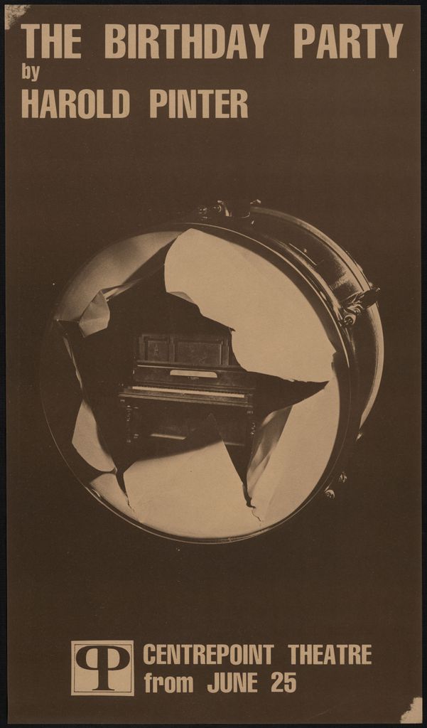 "The Birthday Party by Harold Pinter. Centrepoint Theatre from June 25." Part of a collection of posters that were displayed in the Public Library in the 1970s - 1980s.
