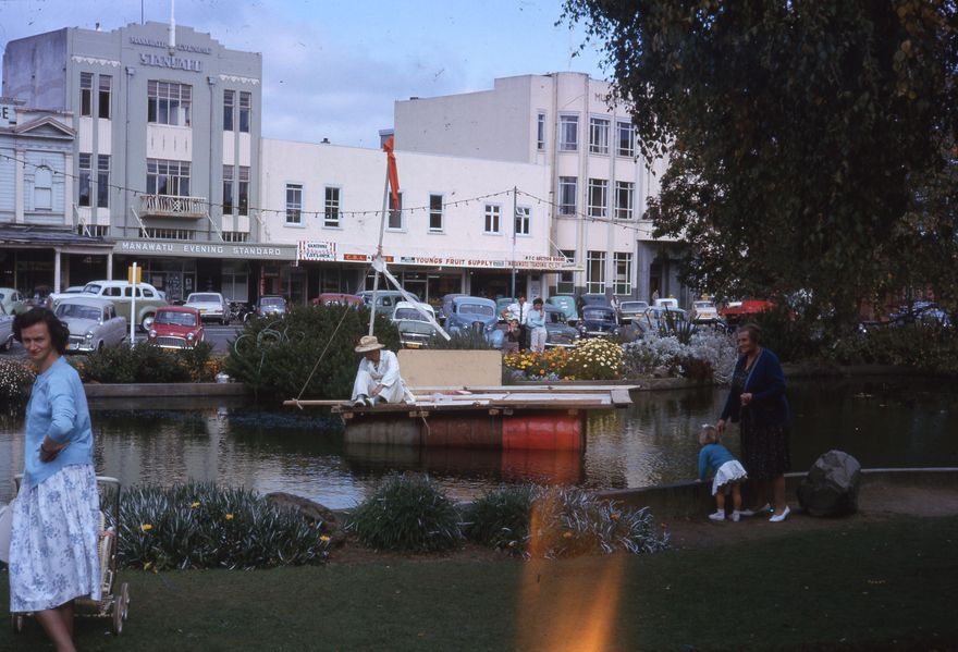 The annual Student procession or 'Procesh' was held at midday on the Monday of 'Capping Week' and was a highlight of 'Town and Gown' relations between Massey University and the City. Sometimes courting controversy with its 'student humour', the parade usually consisted of floats, clowns and trick cyclists. It attracted large crowds, stopping traffic along Broadway and around the Square and usually ended with a ceremonial ducking in the Butterfly pond after speeches by students representing 'Lord and Lady Massey' and the Mayor.