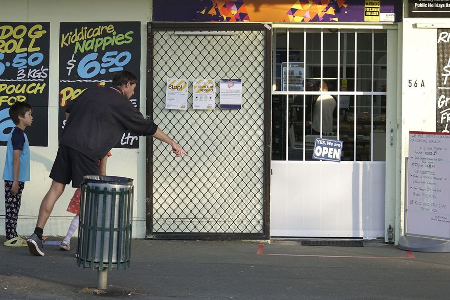 A family discuss precautions as they wait to enter the Limbrick Street Maxi Market.