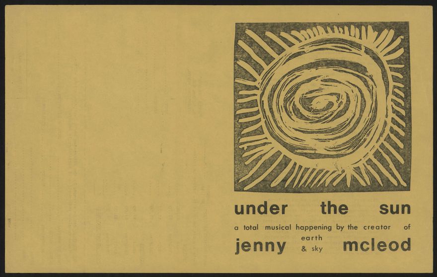 Jenny McLeod was commissioned by the city of Palmerston North to compose music to commemorate its centenary in 1971. The resulting work, Under The Sun, was performed twice during Palmerston North's Centennial production, on 29 and 30 May 1971. With Under The Sun, ‘New Zealand ceases forever to be a provincial society’ wrote playwright Bruce Mason in the New Zealand Listener.