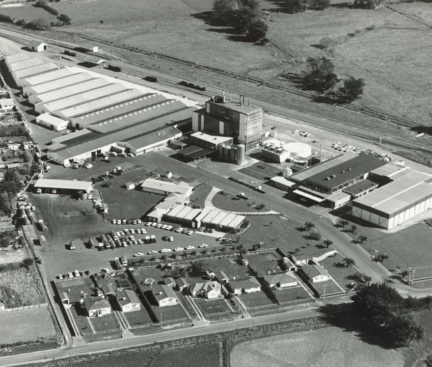 Aerial photgraph of the Manawatu Co-Operative Dairy Company complex in Reserve Road at Longburn.