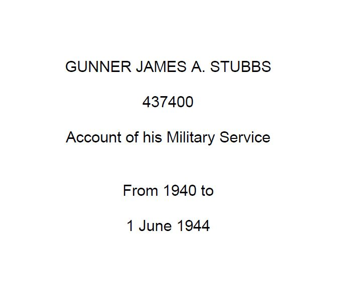 This is the transcribed war diary of Gunner James Athol Stubbs (service number 437400), who died from viral hepatitis Type A while returning home from serving in the New Zealand Artillery, 6 Field.