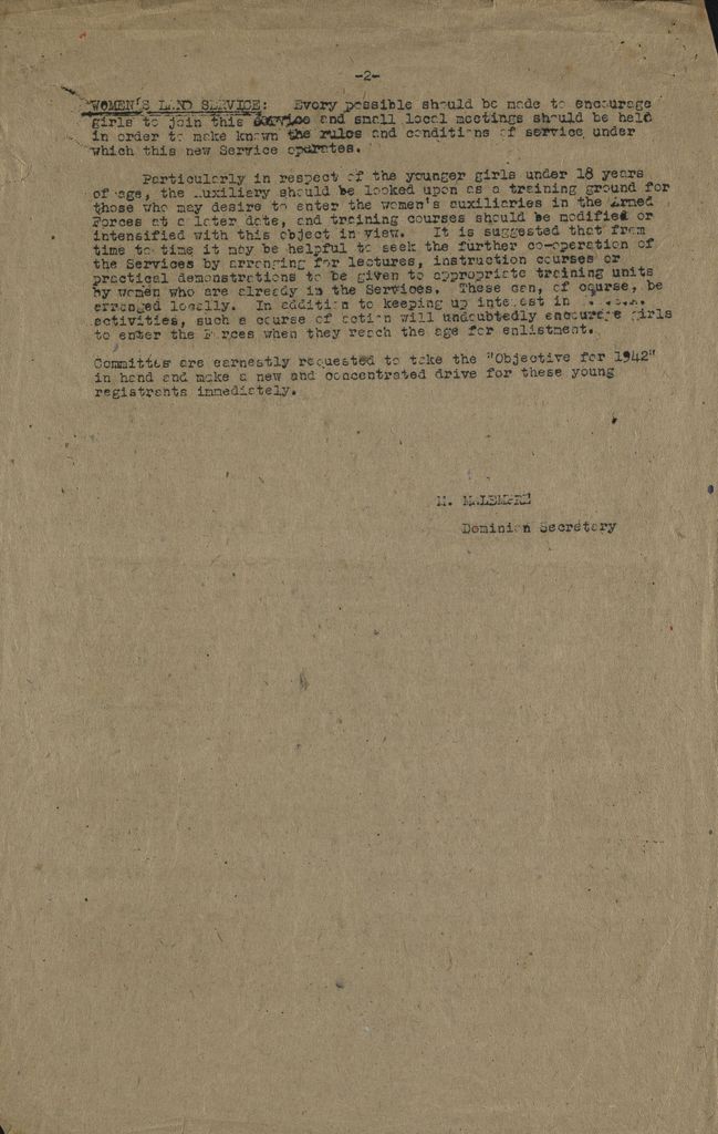 Women's War Service Auxiliary Objective for 1942 Page 2