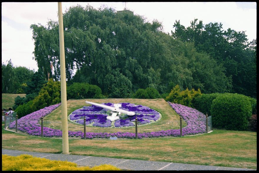 The floral clock, planted out in seasonal flowers, was situated on The Square, looking towards Fitzherbert Avenue.