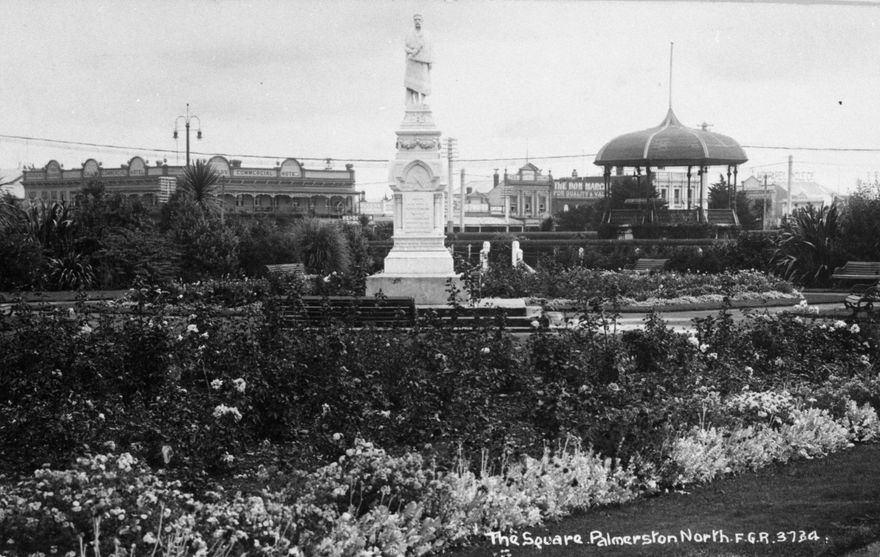 The statue of Peeti Te Awe Awe, commissioned by his sister Ereni Te Awe Awe, was erected on the northern side of The Square in 1907. It was designed by Harold Anderson, a local artist and photographer, and made of white carrara marble. Te Peeti Te Awe Awe (c 1820-1884), a Chief of the Rangitāne Tribe, was prominent in the establishment of Palmerston North. The statue remains in the same place as it was originally erected (2008).