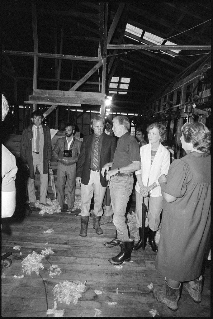 This image was taken by the Evening Standard on the 11th of February 1984 but was not published. It depicts former United States president Jimmy Carter and his wife Rosalynn visiting the hobby-farm of Richard and Barbara Walton at Aokautere.