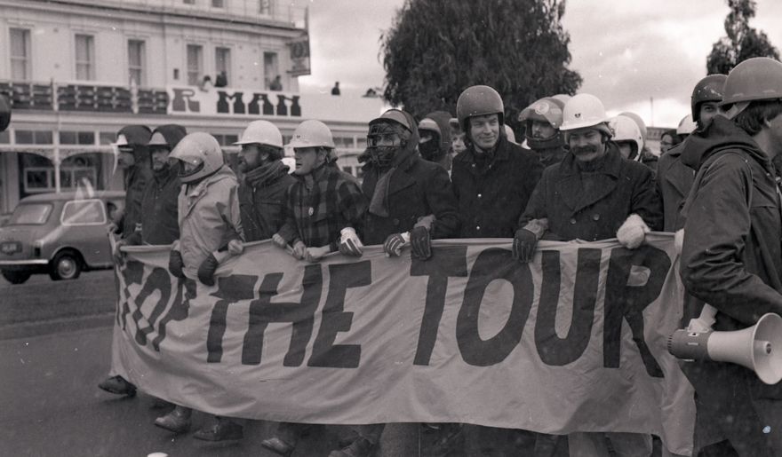 Anti-Apartheid and anti-Tour protest vanguard on match day.