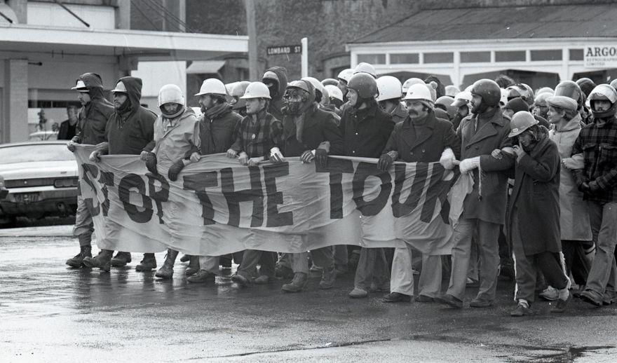 This image was taken (but not used) for a story that ran in The Manawatu Evening Standard on 01 August 1981, depicting the march in protest of the rugby match played between the South African Springboks and the Manawatū provincial team. The march was a coalition of organised responses from representatives and marshals of COST (Citizens Opposed to the Springbok Tour), MAST (Manawatū Against the Springbok Tour) and HART (Halt All Racist Tours) and attracted participants from within the city but also from Wellington and Auckland. HART founder Trevor Richards appears second from right.