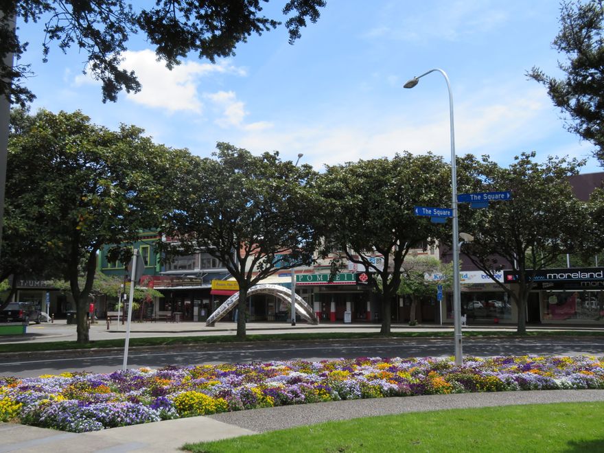 Looking across from The Square to the corner of Coleman Mall. Central can be seen the 'Numbers" sculpture.