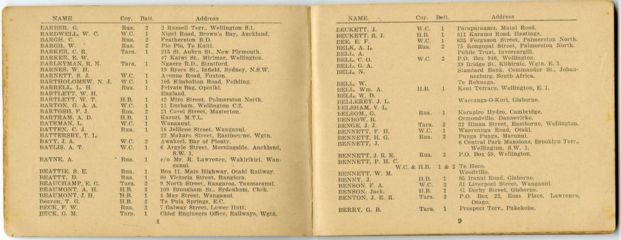 A roll book containing names, addresses and regimental particulars of those who served in the Wellington Infantry Regiment during World War One.