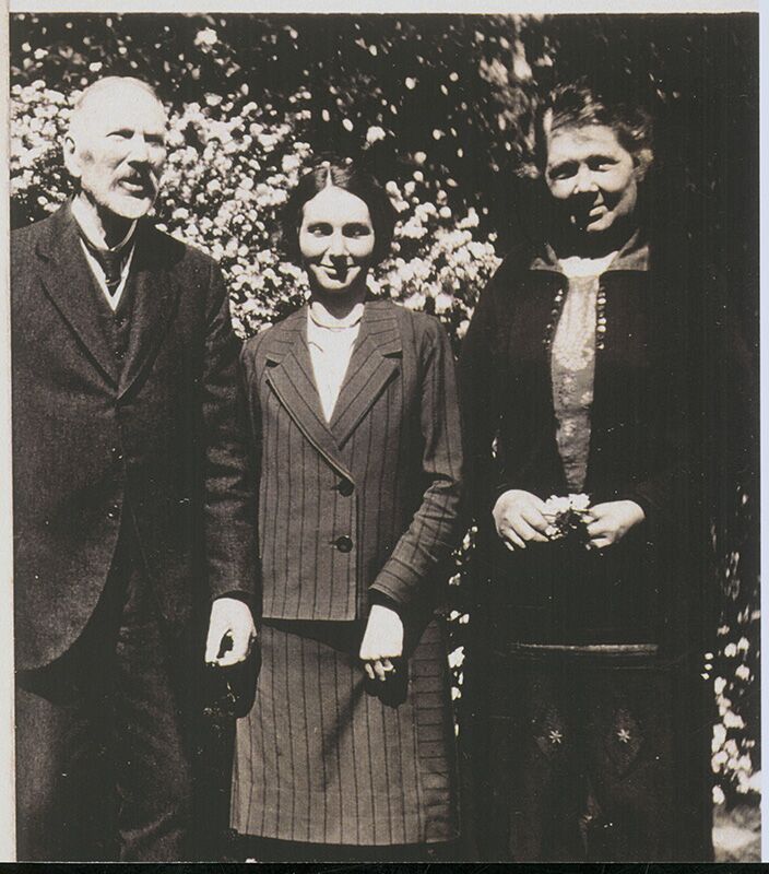 T. R. Moore (left), Unknown person (centre) and Gretchen Moore (right), 1930's.