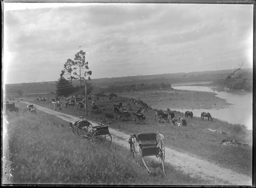 This photograph was created by William James Young in the early 20th century. A large variety of subjects are depicted in the collection, but family, rural life and travel are the most prominent themes. The exact location of the photographs in the Young Collection is unknown, but W J Young lived on a farm in Mt Stewart, Rangitikei, and some of the photographs include his house. The Young family were apparently avid travellers and photographs later in the collection feature scenes from Rotorua, Auckland, Whanganui, as well as other unidentified locations. The portraits are all unidentified, but are presumably of members of the Young family. The photographers parents were George Henry (b 1833) and Jane McDowell (b 1842, d 1916). They came to New Zealand in 1877. The same year, they bought the home farm on Mt Stewart and called it Kilrudden after Kilrudden House, the home of the McDowell family in Ireland. The couple had four children: Ann (b 1873), Margaret (b 1876), John (b 1878) and William James (b 1880). William James married Mary Elizabeth Thompson and they had four children: Doris (b 1914, d 1989), George (b 1916, d 1991), Royden McDowell (b 1925, d 1992) and Noel William (b 1927, d 2013).