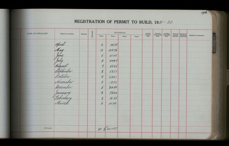 Page from the third Register of Building Permits for Palmerston North Borough Council from April 1922 to March 1935.