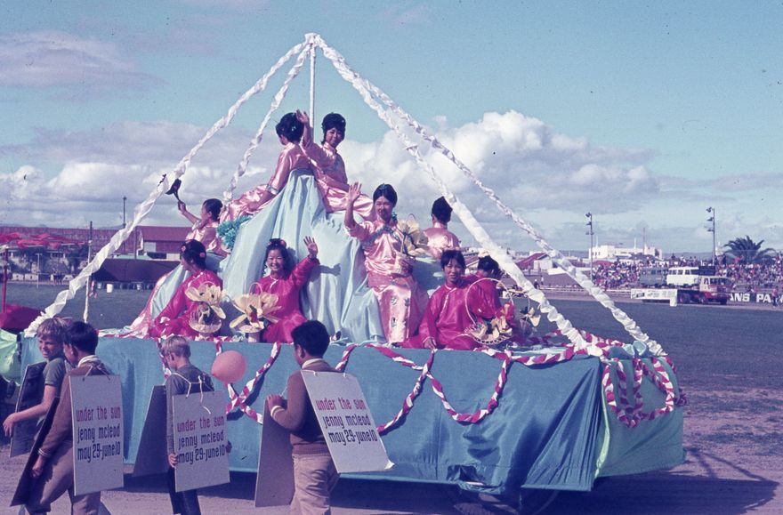 Ninety-two floats took part at the Palmerston North City Centennial celebrations of 1971. Approx. 10,000 people were present at the event to celebrate 100 years of Palmerston North. Keith Roland Hamblyn was a photographer with the Palmerston North Hospital Board for many years. In a private capacity, he documented a wide variety of public events between 1958 and the early 1970s.