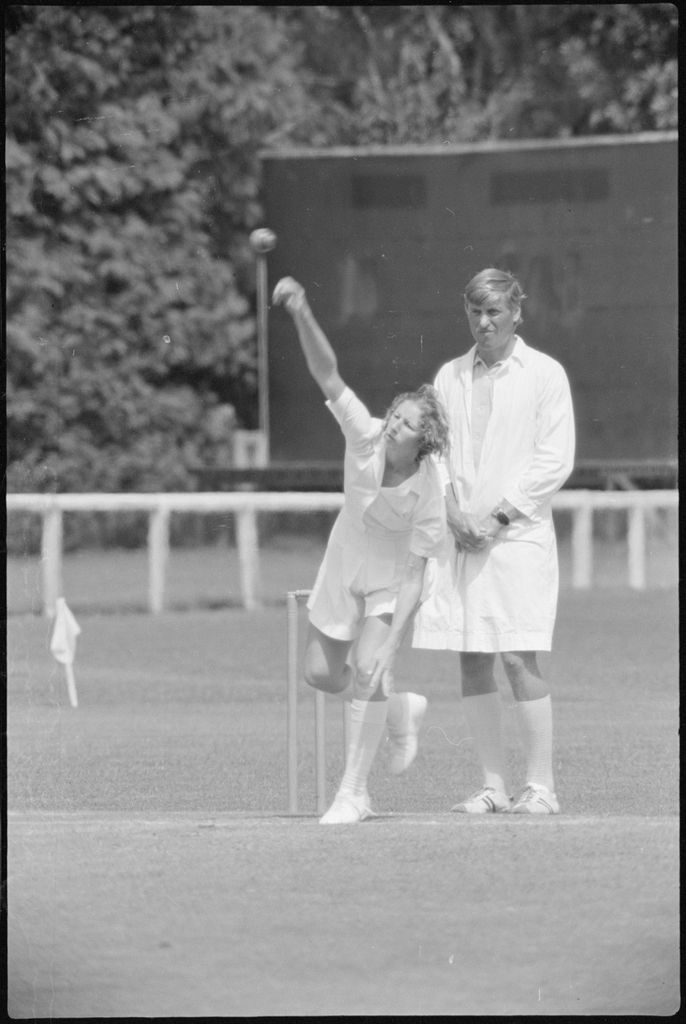This image was taken (but not published) by the Evening Standard on either the 27th or 29th of December 1980. It depicts a moment of action from the Hallyburton Johnstone Shield 2-day match between the Auckland and Canterbury women’s cricket teams. Canterbury won by 10 wickets.