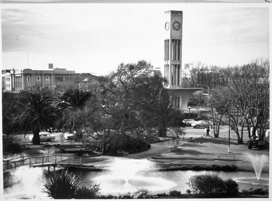 The Hopwood Clock Tower was constructed in 1956 and contains the chimes from the Post Office Tower. The Lakelet was constructed in October 1909 and the jets of water were presented to Palmerston North in December 1966 by Vera Holland in memory of her son Edmund Laurie Holland.