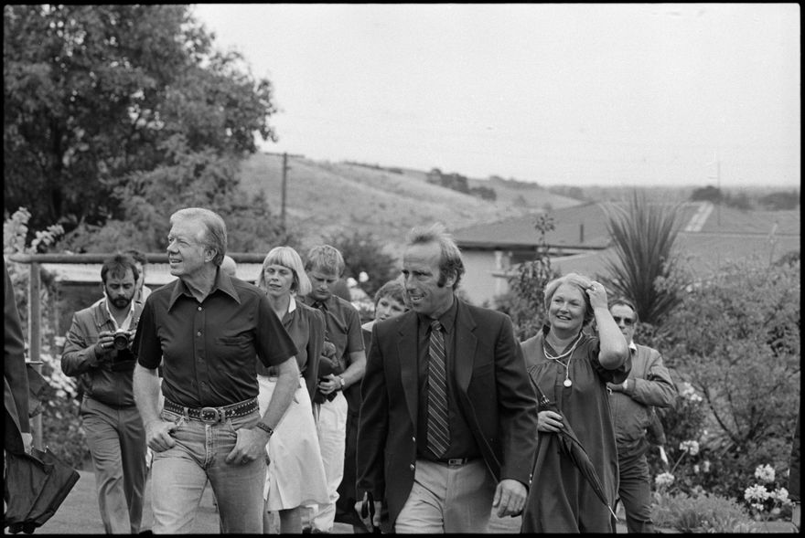 This image was taken by the Evening Standard on the 11th of February 1984 but was not published. It depicts former United States president Jimmy Carter and his wife Rosalynn visiting the hobby-farm of Richard and Barbara Walton at Aokautere.