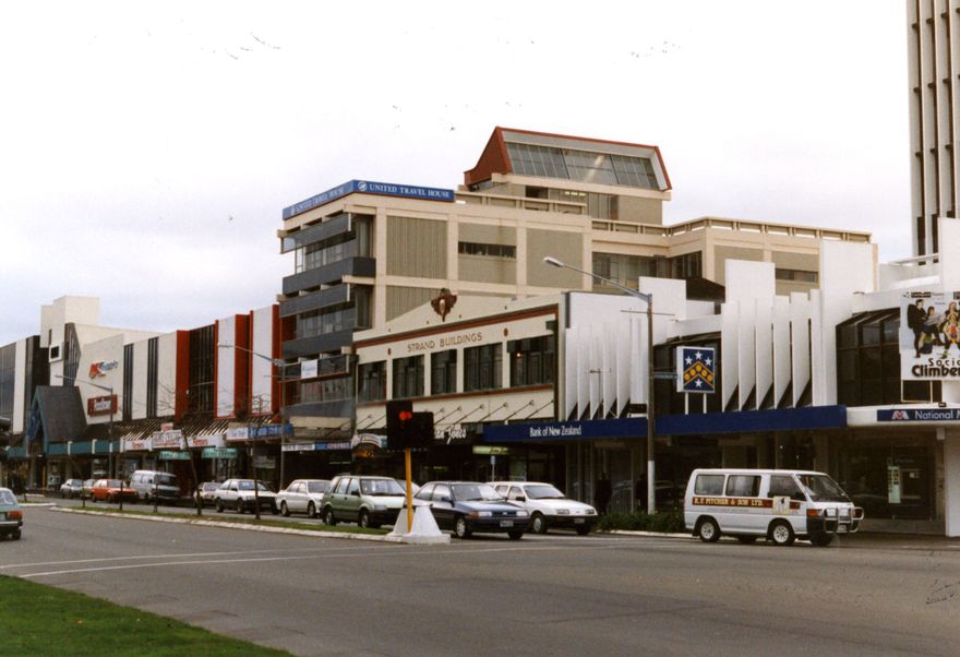 A view of the south-east side of the Square looking east from the corner of Fitzherbert Avenue.
