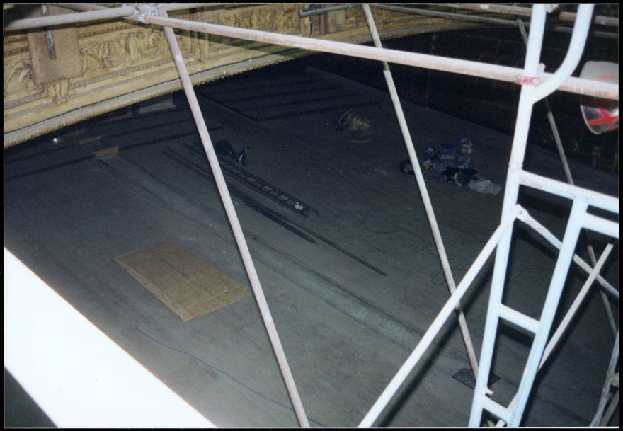 The Regent Theatre under construction during re-development work in 1996-1997. The Regent Theatre was built by the Australasian cinema and theatre chain J.C. Williamson Limited. Williamson's began its New Zealand operation in 1926. The theatre, one of several Regents built throughout New Zealand and Australia at this time, was a dual-purpose cinema and theatre. The Melbourne architect Charles Hollinshed was hired to design the building which was completed in 1930 at a cost of £46,000, becoming the largest and most lavish auditorium in the city. It retained its twin functions for much of its life, before falling into relative disuse and eventually closing in 1991. The Palmerston North City Council purchased the building 1993 and began restoration work in 1996. The Regent Theatre is a now rare survivor of the heyday of the theatre/cinema. As the only such venue in Palmerston North to survive to this day, the Regent is of great social importance to the city. The exterior design, and to a much greater degree, interior design are remarkably authentic and rare examples of theatre design in New Zealand, and as such, the Regent is a landmark building in type and style. The exterior is built in the Art Deco style, while the interior is Persian painted plaster ornament. The external symmetry, vertical fins, shallow stylised relief, stepped skyline, and chevron ornament are typical of the Art Deco style. The main entrance, with walls of coloured plaster and travertine, leads into a large barrel-vaulted, double height space, off which there are the entrances to the main performance space. The interior decoration of the theatre is taken directly from Owen Jones' book on design, “Grammar of Ornament.” The auditorium seats 1393 people in a two-tier circle and stalls arrangement (originally it accommodated 1600 guests). Architect, Charles Hollinshed graduated from Sydney University in 1922, one of the first three graduates in architecture in Australia. With A.H. Walkely, Hollinshed practised in Melbourne and the firm specialised in theatre and cinema design. One of their best-known designs was Her Majesty's Theatre, Melbourne (1934). Hollinshed also design Hoyts Limited (with Richard Gailey) the celebrated "Spanish Gothic" Regent Theatre, Brisbane (1929), now demolished.