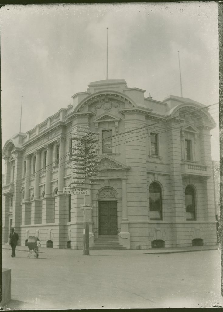 The Bank of New Zealand was built on the corner of Rangitikei Street and The Square (1914-1915), on the site of the old Royal Hotel.