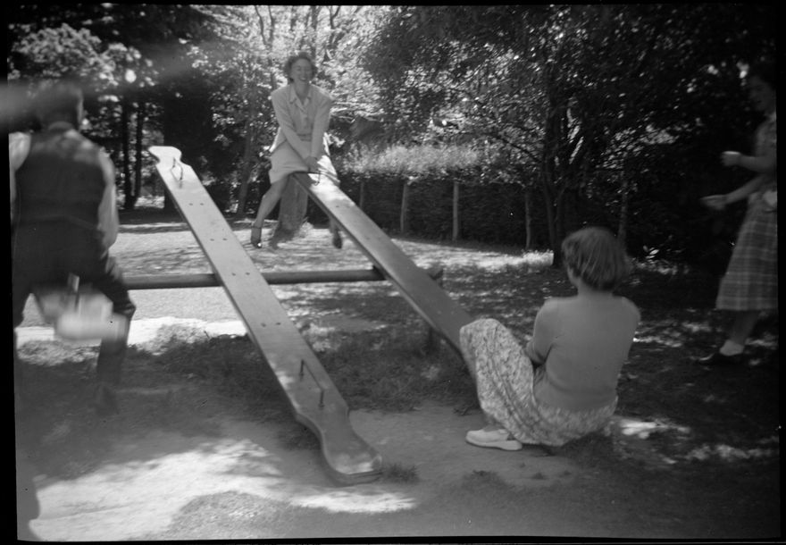 Women playing on Seesaw, thought to be at the Victoria Esplanade