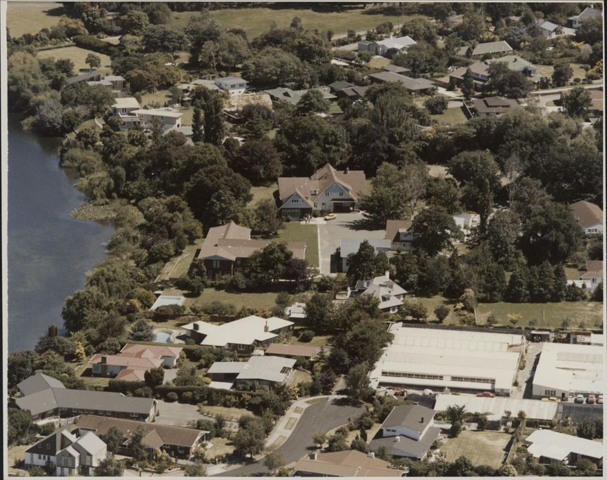 Aerial photograph of houses and properties on and around Centennial Drive.