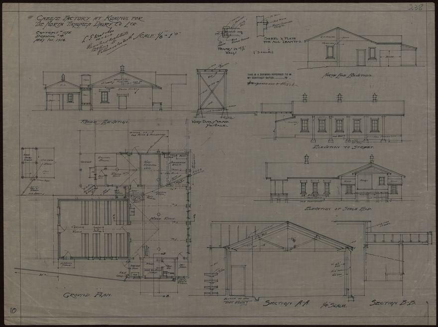 This plan for a cheese factory was designed by L. G. West and Son for the North Tiraumea Dairy Company Limited. The Danish-born architect Ludolph Georg West (1846-1919) established an architectural practice in Palmerston North in about 1880. In 1912 he formed a partnership with his son, Ernest Vilhem West, who continued the business after his father's death.