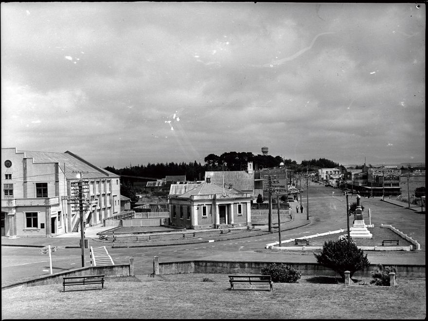 Foxton township, with the war memorial, built in 1920, in the foreground