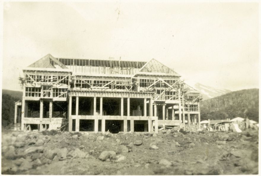 The Chateau, a neo-Georgian structure of four stories and basement, was designed by Timaru-based architect Herbert Hall (1880–1939) who modelled it on the Canadian Resort of Lake Louise.