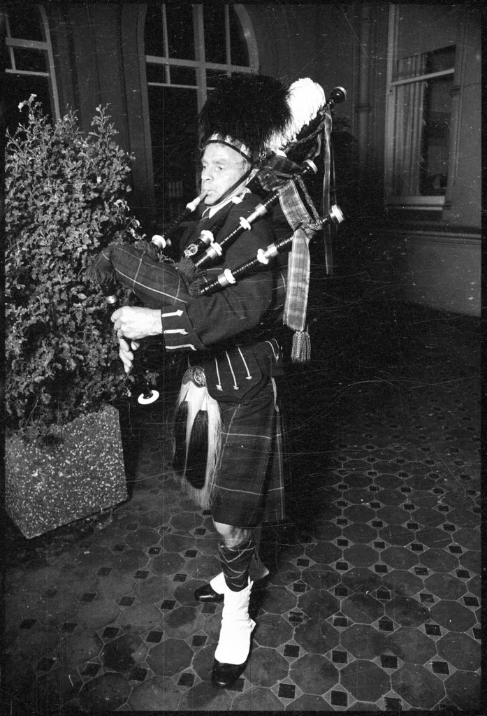 "The skirl of Wally Gordon's bagpipes playing a lament wafted through the rooms of Parliament last night. With the consent of the late Prime Minister's son Raymond, the ageing Scott who played at Peter Fraser's funeral gave his all. "It is a tragic loss," said the piper who for many years in his working life fitted the Prime Minister with suits. "A fine stature of a man.""