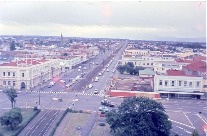The cleared construction site was to be used for Palmerston North's new 3-storey library on the corner of Main Street and The Square, opposite the Post Office. Construction of the new library was completed in 1965 and opened on 4 November 1965.