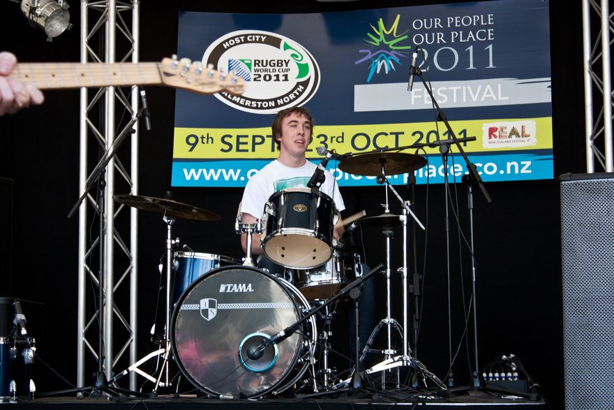 Rugby World Cup fans were able to enjoy a wealth of events in Te Marae o Hine – the Square in the afternoon leading up to the game between Georgia and Romania, including live music from local Palmerston North band The Nerines: Drew Delany (vocals, guitar), Benny Tipene (guitar, vocals), Fabian O’Halloran (bass, vocals), and Tadhg Delany (drums, vocals).