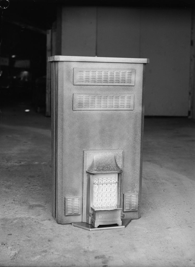 This photograph shows an unidentified gas heater. Many photographs in the Elmar Collection come from businesses who needed photographs for advertising purposes.