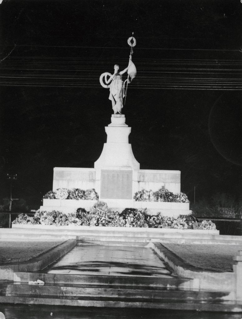 A war memorial to commemorate local soldiers who died in World War One was erected in the centre of The Square, Palmerston North, in 1926. The figure that sits atop the memorial was based on a similar one in Folkstone, England. Today it also commemorates those who died in World War Two, and the Korean and Vietman Wars.